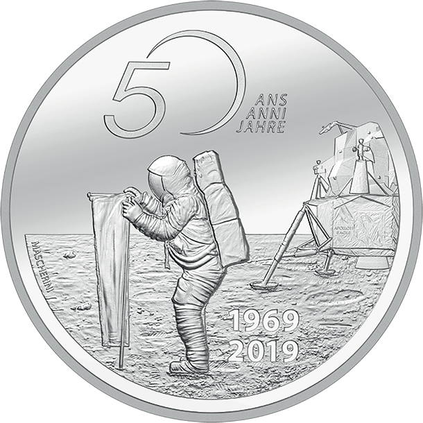 Il 2019 ricorda i 50 anni del primo uomo sulla Luna. Numerosi stati hanno deciso di dedicare una loro moneta commemorativa a questo evento di portata mondiale. Tutti pezzi di metallo pregiato. Le immagini dei vari tondelli sono più o meno similari (l’astronauta, la bandiera, il lander, la prima impronta sul terreno lunare) e quindi rimandano alla medesima storia. Esce da questo contesto la moneta svizzera (5 franchi d’argento) la quale si ricollega sì all’evento lunare ma mostrando l’immagine di Aldrin che pianta la vela solare, realizzata dall’Università di Berna, nel suolo lunare (lascio a voi scoprire gli studi scientifici collegati a questo oggetto).